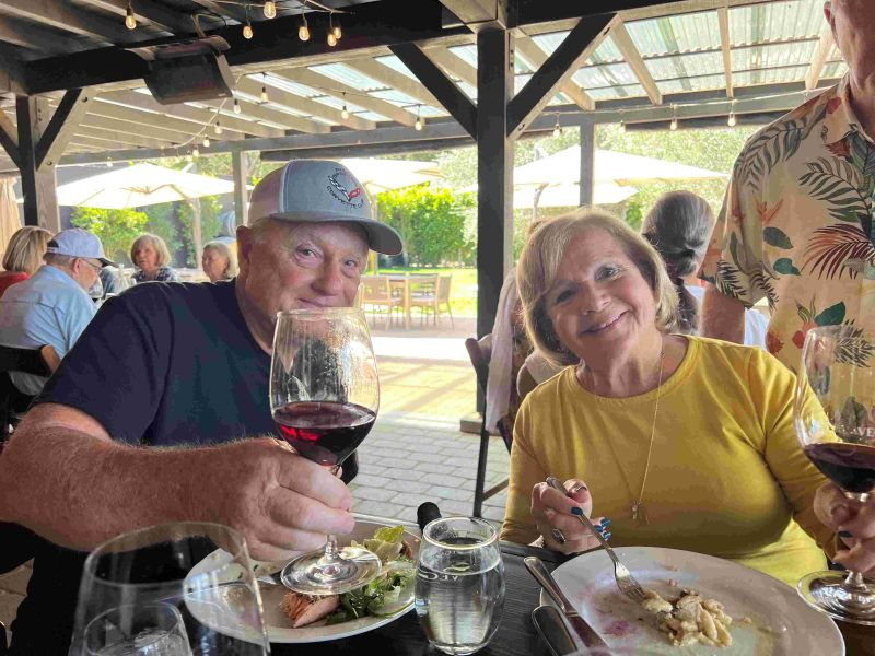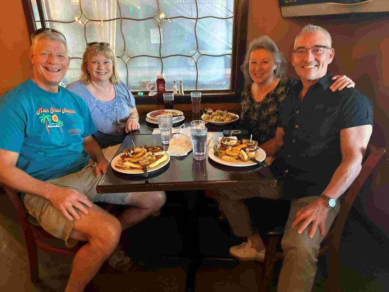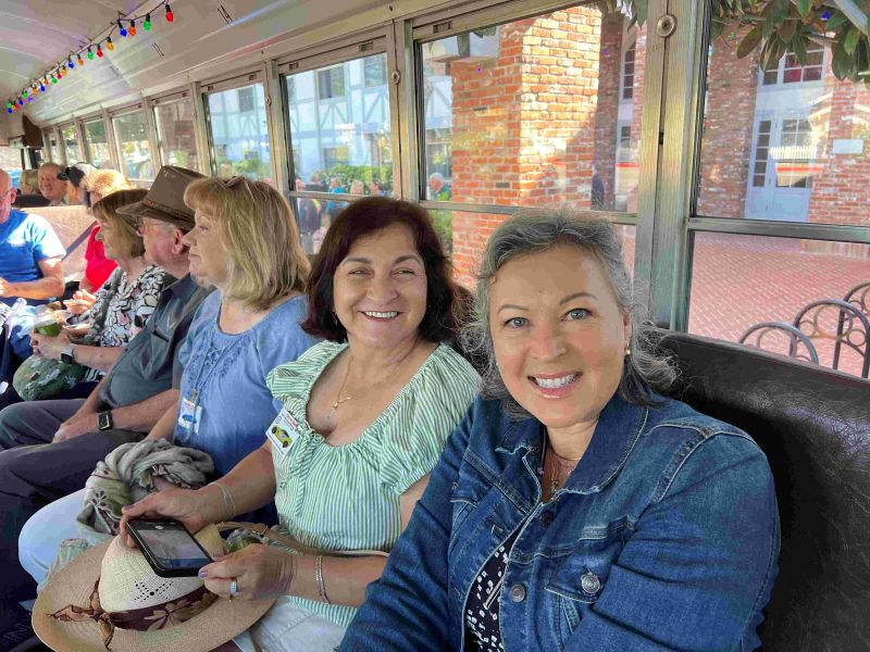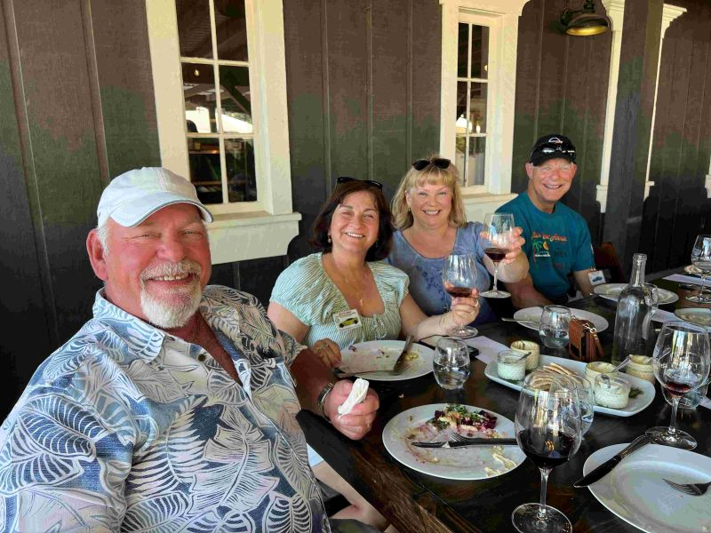 Each couple took their own path. Alex and Gloria headed toward Cachuma Lake and discovered the historic Cold Spring Tavern, a rustic 1860s stagecoach stop with a unique atmosphere. Hans and Kathy visited Mission Santa Inés before continuing north to meet friends. Lorin and Victoria took advantage of the open road and perfect weather to drive up to San Luis Obispo, enjoying a stroll through town and a relaxing lunch.